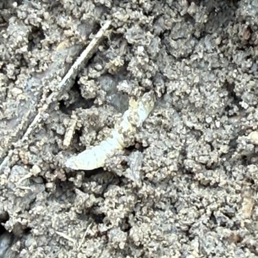 Lervos: bekojės, permatomai gelsvai baltos spalvos. Priekyje – juodi, kablį primenantys žandai, gale – iškilimai (gumbeliai). Ilgis – nuo 0,7 mm iki 7 mm.